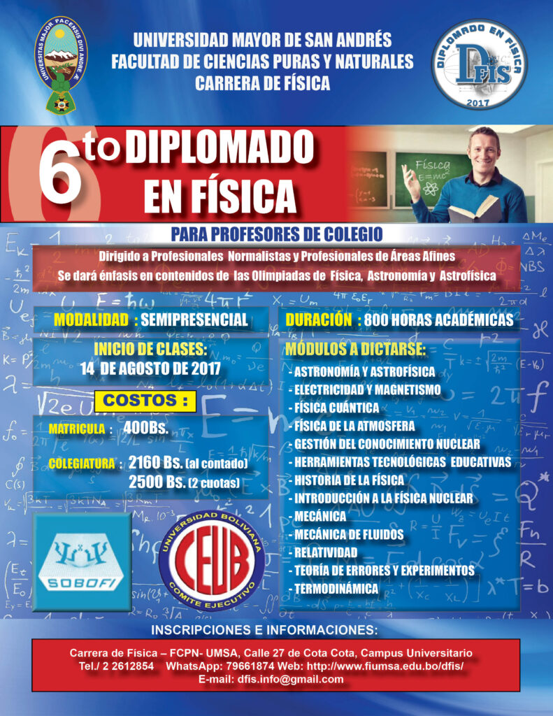 IMPORTANTE: El comprobante de depósito deberá ser escaneado y enviado por correo electrónico junto con los datos de registro solicitados, el original del comprobante deberá ser entregado en la Carrera de Física, calle 27 de Cota Cota, campus UMSA, La Paz, Bolivia.